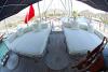 Faciliteiten van het charter jacht: Flybridge met ruim zonnedek en ligstoelen, zonnescherm, gestoffeerde zitjes op het achterdek met een grote eettafel en stoelen, lounge met koffiecorner en een eettafel, Music Set, een rubberboot met buitenboordmotor, snorkel- en visuitrusting, kano, sta op peddel...
